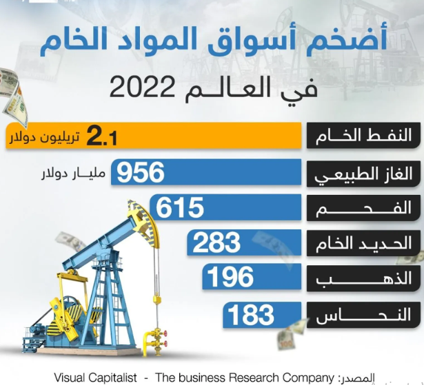 قيمة سوق النفط لوحده تتجاوز 2 تريليون دولار .. تعرفوا إلى أضخم أسواق المواد الخام في العالم خلال عام 2022 .