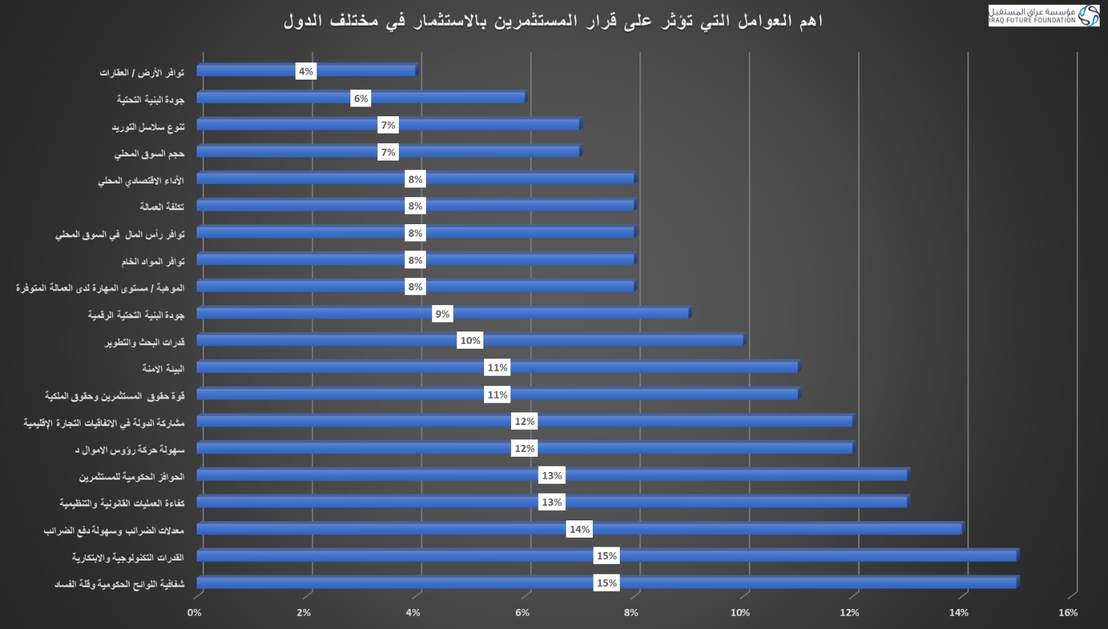 القضاء على الفساد ووضوح اللوائح الحكومية وتوفرها بشكل تام هو السبيل من اجل بناء منظومة استثمارية مناسبة وقادرة على جذب المستثمرين.