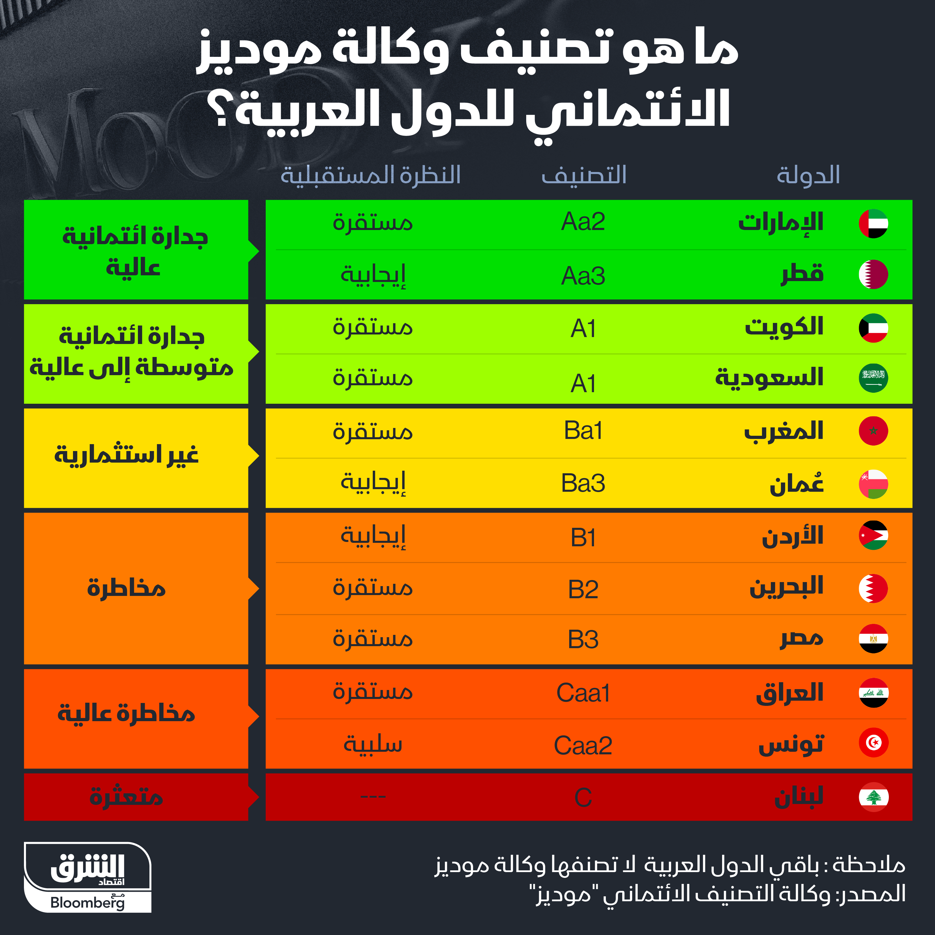 تصنيف وكالة موديز الائتماني للدول العربية :