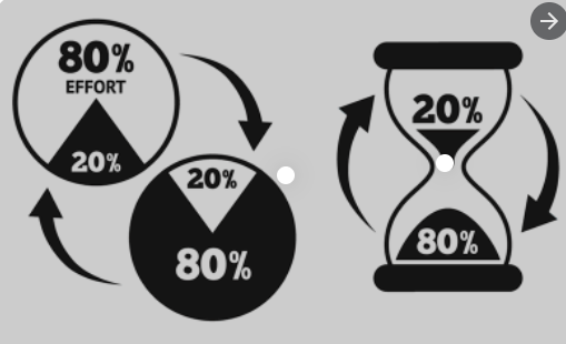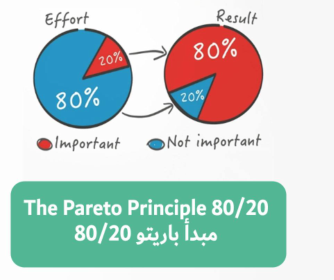 20/80 التي تنطبق تقريباً على كل المجالات،فعلى سبيل المثال؛ في مجال التسويق تتأتى 80% من المبيعات من %20