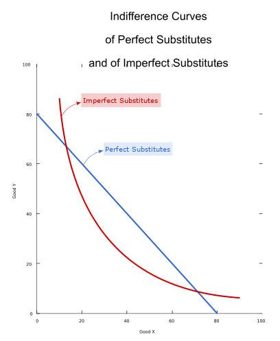 قد تكون السلع البديلة غير المثالية قابلة للاستبدال،ويمكن إدراك درجة اختلافها بسهولة من قبل المستهلكين، لذا يتمسك بعضهم باختيار منتج ما عوضًا عن آخر، كاختيار الكوكاكولا بدلًا من بيبسي، حتى لو كان ثمنها أعلى بسبب الطعم. قد يرى المستهلك أن البيبسي بديل غير مثالي للكوكاكولا في حال أدرك الاختلاف بينهم، بصرف النظر عن تصنيف الاقتصاديين لها بوصفها سلعة بديلة مثالية. تُصنف السّلع البديلة غير المثالية إلى سلع بديلة إجمالية وسلع بديلة صافية، تبعًا للمنفعة.