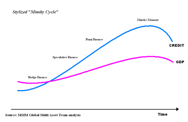 تحدث أزمة لحظة مينسكي بعد مدة طويلة من المضاربات المرتفعة المصحوبة بديون ثقيلة يتحملها المستثمرون جميعًا أفرادًا ومؤسسات.
