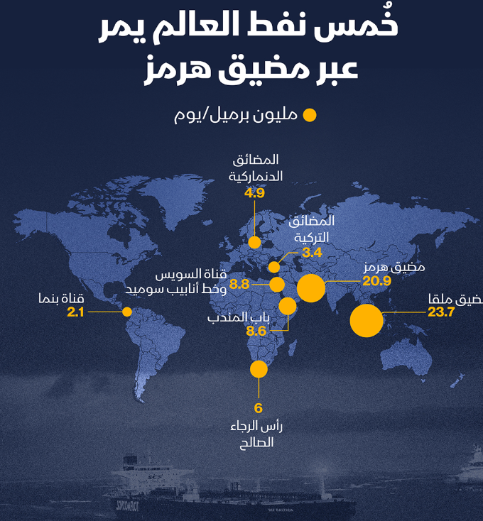 نحو خُمس نفط العالم يمر عبر مضيق هرمز.