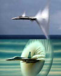 عندما تتحرك طائرة بسرعة تساوي أو تتجاوز سرعة الصوت (نحو 1235 كم/ساعة عند مستوى سطح البحر)، فإنها تخترق ما يُعرف بـ"جدار الصوت"، وهو الحاجز الناتج عن تراكم موجات الضغط أمام الطائرة. عند اختراقه، تُسمَع فرقعة قوية تُدعى "الفرقعة الصوتية"، تشبه انفجارًا. هذه الظاهرة لا تحدث بسبب ارتطام مادي، بل نتيجة انتقال مفاجئ لموجات الضغط في الهواء. تستخدم الطائرات الحربية عادة هذه السرعات، لكن اختراق جدار الصوت يستهلك وقودًا كبيرًا ويتطلب تصميمًا خاصًا لمقاومة الاهتزازات والحرارة العالية.