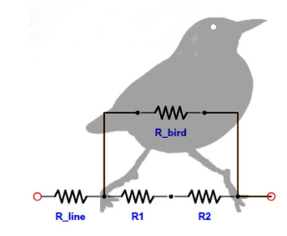 عندما يقف الطائر على سلك كهربائي عالٍ، لا يتعرض للصعق لأن قدميه تلامسان السلك في نقطتين لهما نفس الجهد الكهربائي تقريبًا، فلا يوجد فرق جهد يدفع التيار عبر جسمه. فحسب قانون أوم، التيار يتدفق فقط إذا وُجد فرق في الجهد، ومع انعدامه يبقى التيار شبه صفر. لكن إذا لمس الطائر سلكين مختلفين في الجهد أو سلكًا وجسمًا مؤرضًا كعمود معدني، سيتشكل فرق جهد كبير بين نقطتي التماس، فيمر تيار قوي في جسمه يؤدي إلى صعقه فورًا.