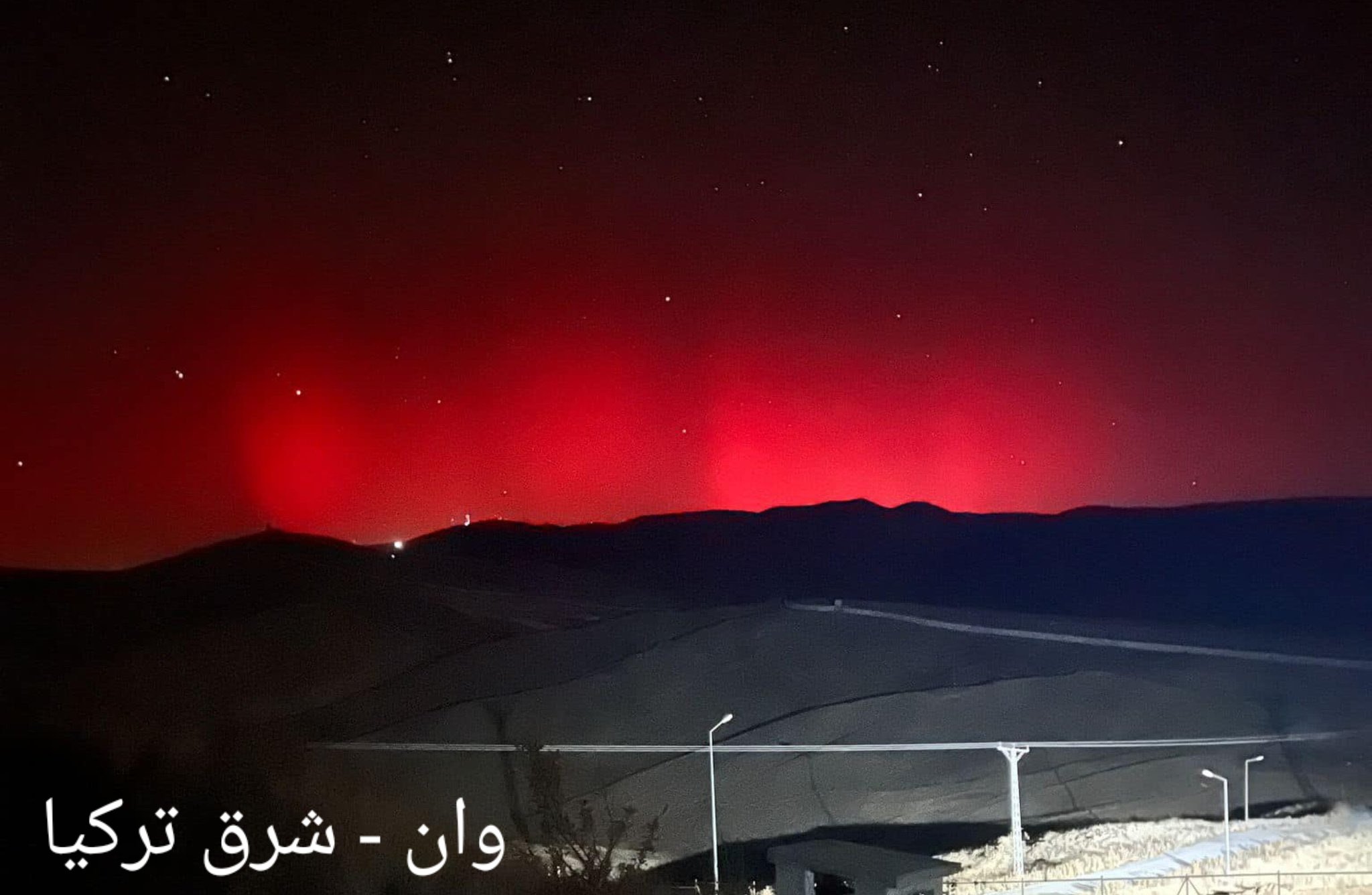 عاصفة مغناطيسية قوية ضربت الارض مساء يوم 5 / 11 / 2023 أدت لتوغل الجسيمات المشحونة بكثافة عالية مما جعلها تتفاعل مع جزئيات الاوكسجين الاقل تركيزا على ارتفاعات 250 كم والذي يتسبب بظهور الشفق القطبي الأحمر.