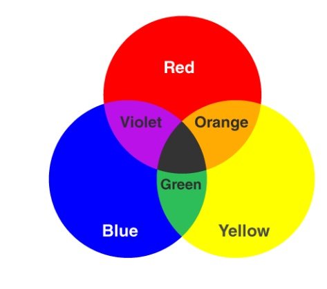 مزج الصبغات اللونية ونواتجها. لاحظ أن الاسود يعني أن الصبغة السوداء تمتص كل الوان الطيف ..دون عكس اي شي!!