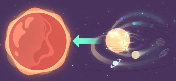 بعد خمس مليارات من السنوات ستتحول شمسنا الى عملاق احمر، وستبتلع بعض الكواكب بالاضافة الى كوكب الارض.