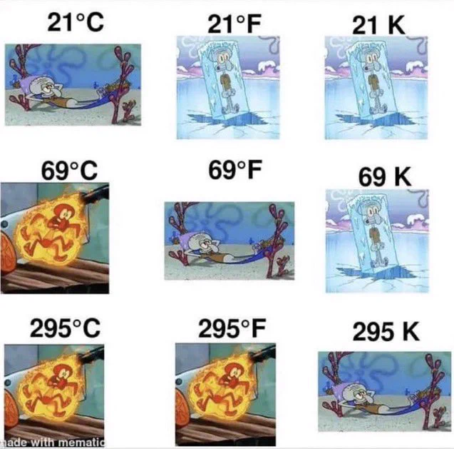 صورة توضح الإختلاف الكبير بين السيليزي والكلفن والفهرنايت: