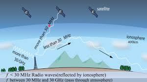 الموجات الكهرومغناطيسية مثل موجات الراديو تنتقل عبر الغلاف الجوي ويمكن أن تنعكس عن طبقة الأيونوسفير المشحونة كهربائيًا على ارتفاعات عالية. هذا الانعكاس يسمح للموجات بالانتقال لمسافات طويلة حول الكرة الأرضية، بعيدًا عن الخط المستقيم المباشر. يعتمد راديو الأمواج القصيرة والرادارات الجوية على هذه الظاهرة لنقل الإشارات وتحديد المواقع، مما يجعلها أساسًا مهمًا في الاتصالات والبث العالمي.