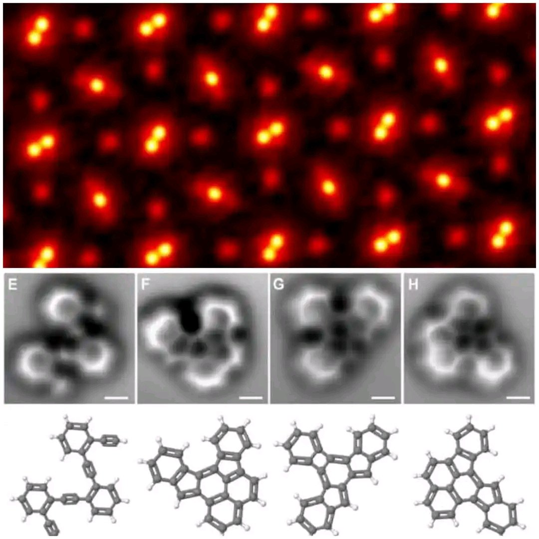 صورة لذرات وجزيئات بعض المركبات الكيميائية وصلت فيها قوة التكبير لبعض المجاهر إلى 100 مليون مرة.