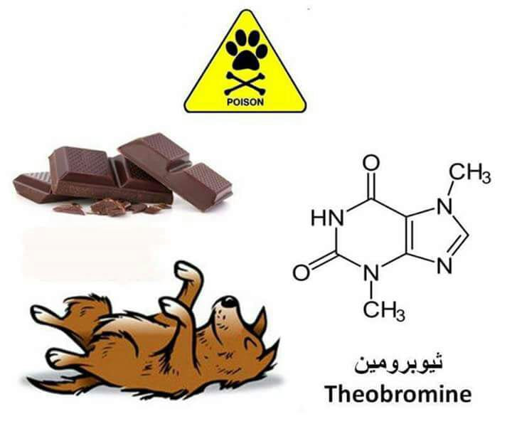 الشوكولاتة سامة للكلاب والقطط حيث ان الكميات الكبيرة منها يمكن ان تؤدي إلى موتها بسبب أحتوائها على قلويد الثيوبرومين