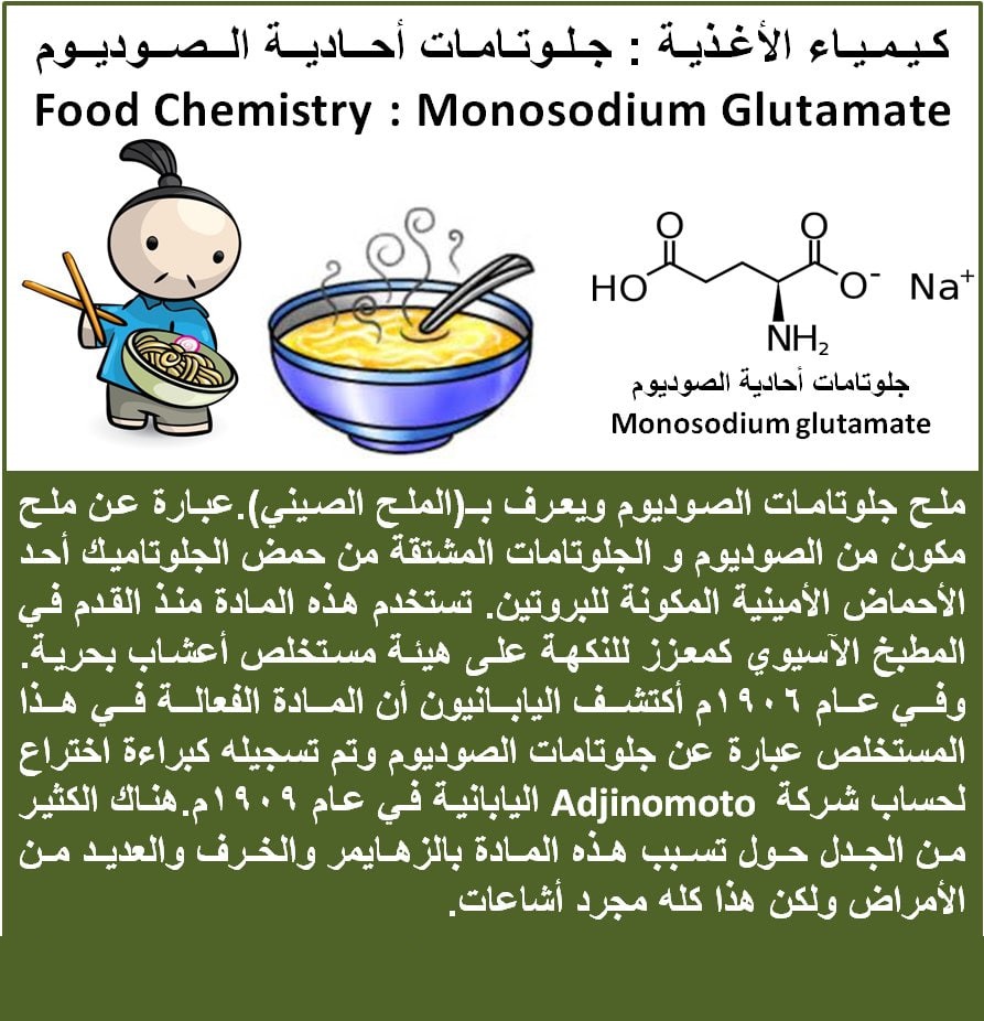 كيمياء الأغذية : جلوتامات الصوديوم مشهوره بـ(الملح الصيني)