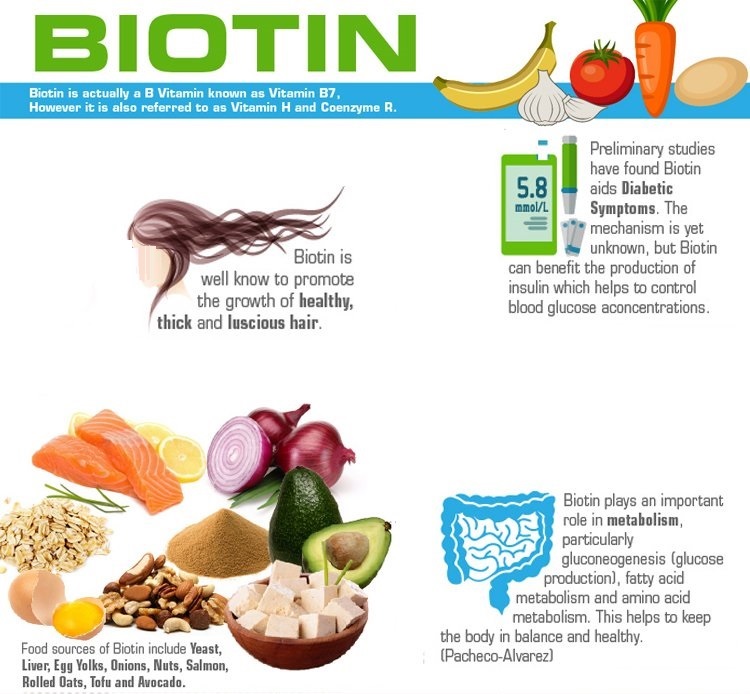 يؤدي نقص البيوتين إلى تساقط في الشعر، لذا يجب إدخال الأطعمة المحتوية على هذا الفيتامين في النظام الغذائي.