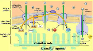 الفسفرة التأكسدية (Oxidative phosphorylation): وهي أكبر مصدر كمي ل (P)~ في الكائنات الهوائية (Aerobic) حيث تأتي الطاقة الحرة التي تسير هذه العملية من تفاعلات الاكسدة في السلسلة التنفسية باستخدام الاكسجين الجنيني داخل المتقدرات .