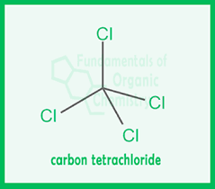 رباعي كلوريد الكربون :سائل عديم الذوبان في الماء و لكنه قابل للذوبان في الكحول و الكلوروفورم و البنزين و الإيثر و ثنائي كبريتيد الكربون . يستخدم رباعي كلوريد الكربون لصنع بعض المركبات مثل كلوروفلورو الميثان ويستعمل كمبرّد أيضا ، كما يستعمل رباعي كلوريد الكربون أيضا في طفايات الحريق وللتنظيف الجاف للأنسجة و كمذيب للتنظيف الجاف ، قد تم إزاحته تقريبًا عن هذا التطبيق بواسطة رباعي كلوريد الإيثيلين و الذي هو أكثر استقرارًا وأقل سمية.