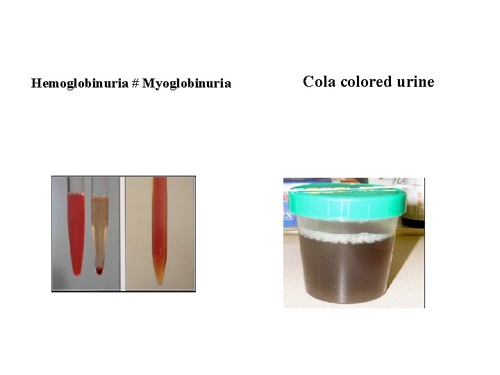 عند التعرض لأذية صادمة قوية يتحرر الميوجلوبين من ألياف العضلات الممزقة ليظهر في البول ملوناً إياه باللون الأحمر الداكن. ورغم أنه يمكن كشف الميوجلوبين في البلازما بعد احتشاء العضلة القلبية، إلا أن قياس إنزيمات المصل يقدم دليلا أكثر حساسية على الأذية القلبية.