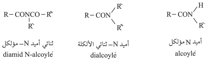الأميدات amides سلسلة من المركبات تشتق من النشادر بأسْيَلَة acylation واحدة على الأقل فتنتج الأميدات الأولية R−CO−NH2 وهي أهمها، أو بأسيلة مزدوجة أو ثلاثية فتعطي ثنائيات الأميد (RCO)2NH وثلاثيات الأميد (RCO)3N، كما يمكن إبدال جذر ألكيل أو أريل أو جذرين بعدد مماثل في أحادي الأميد أو ثنائية فتنشأ مختلف الأميدات: