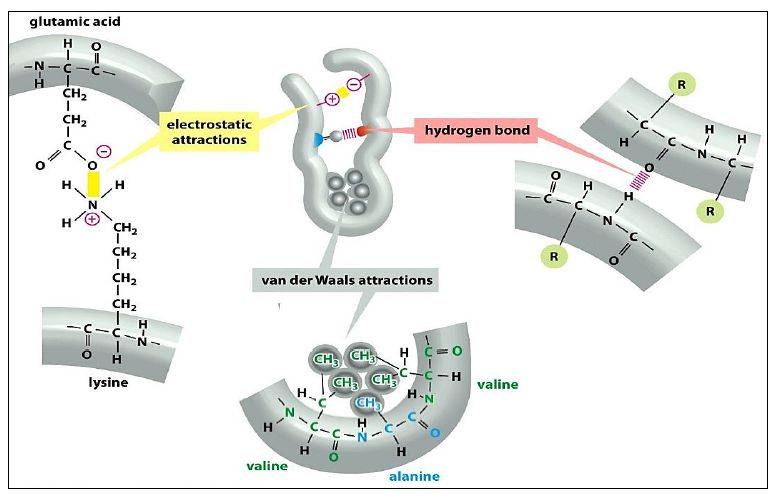 تتضمن التأثرات اللاتساهمية الضعيفة الاخرى التي تساهم في استقرار البلمرات الحيوية كلاً من التأثيرات الكارهة للماء وقوى فان در فالس.
