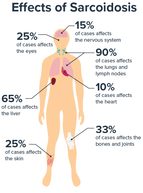 يعاني حوالي (10-20)% من المرضى المصابين بــ Sarcoidosis من فرط الكالسيوم المعتدل ، الذي يكون غالباً متقطع ، وفي أكثر الاحيان يعانون هؤلاء المرضى منHypercalceamiaa كما يكون مستوى الفوسفات في البلازما مرتفعا ولكن نشاط الأنزيم الفوسفاتير القاعدي يكون منخفضا وإذا ازداد فيكون منشأة كبدي ومن المحتمل أن يسبب عدم حدوث تصفية في الكبد. إن حدوث فرط الكالسيوم في الدم في حالة Sarcoidosis ترجع إلى وضعها الطبيعي إذا كانت بسبب كمية مرتفعة من الكوريتزون
