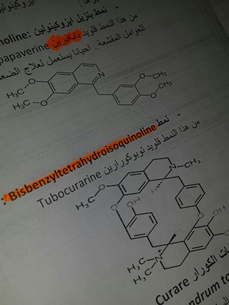 توبوكورارين: هو مانع عصبي عضلي تنافسي benzylisoquinolinium. يمكن الحصول عليه من سيقان نبتة Chondodendron tomentosum وهو نبات الكورار الطبي ، والذي يشار إليه أحيانًا في أدبيات التخدير. كلوريد توبوكورارين . بعد الحقن في الوريد ، يظهر الإحصار العصبي العضلي منه في غضون دقيقة واحدة ويستمر لمدة 30 دقيقة تقريبًا ؛ يتم تحقيق أقصى تأثير خلال 2 إلى 5 دقائق. تم استخدام كلوريد توبوكورارين بشكل مشابه لحاصرات عصبية عضلية منافسة أخرى لإنتاج استرخاء العضلات اثناء العمليات الجراحية.
