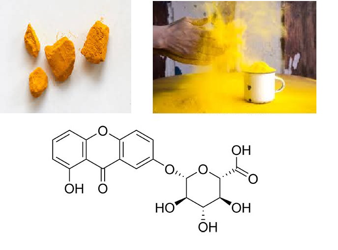 إيوكزانثين أو حمض إيوكزانتين (بالإنجليزية: Euxanthinic acid)‏ : يحصل عليه من بول الماشية التي تتغذى على أوراق شجرة المانجا. يمكن تحصيل 50 غ من الحيوان الواحد في اليوم. كان حمض الأوكسانتنيك في يوم من الأيام أغلى خضاب أصفر يطلبه الفنانون. وقد كان يصنع في الهند مما أعطاه اسم الاً صفر الهندي.