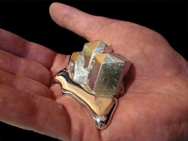 العناصر الصلبة الوحيدة التي تاخذ شكلا سائلا في درجة حرارة الغرفة هي البروم والزئبق. ومع ذلك، فيمكنك تذويب الغاليوم عن طريق امساك كتلة منه في دفء يديك.