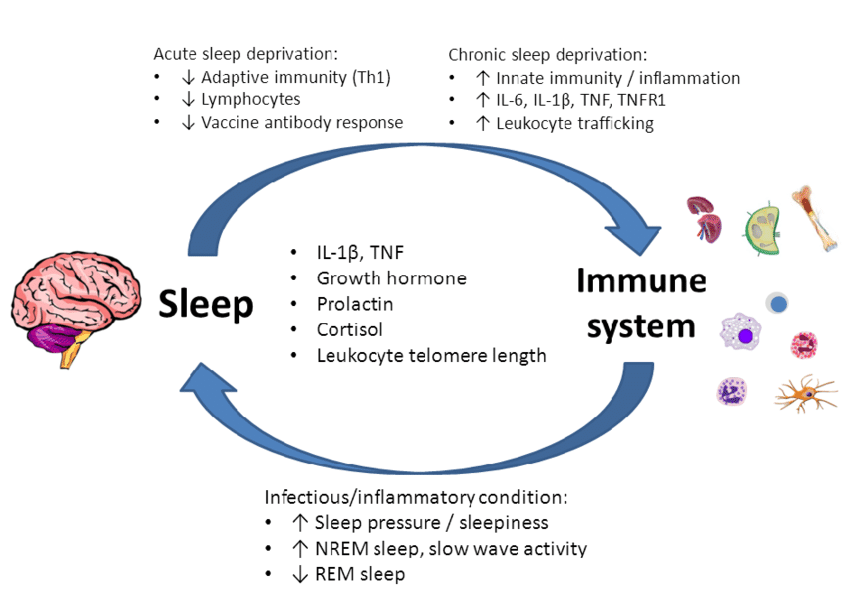 قلة النوم يمكن أن تؤثر على جهازك المناعي. تشير الدراسات إلى أن الأشخاص الذين لا يحصلون على قسط كاف من النوم أو النوم الكافي هم أكثر عرضة للإصابة بالمرض بعد تعرضهم للفيروس ، مثل فيروس البرد. يمكن أن يؤثر قلة النوم أيضًا على سرعة التعافي إذا مرضت.