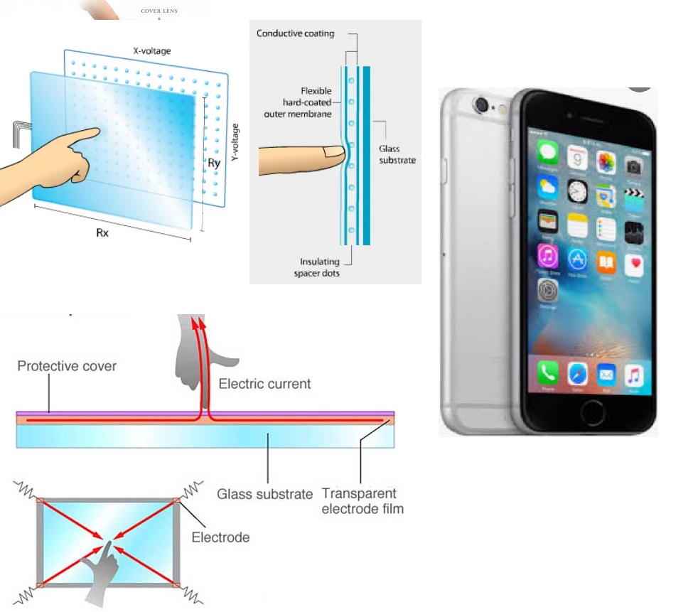الزجاج الموصل للكهرباء : (اوكسيد القصدير - انديوم ).أكسيد القصدير الإنديوم (ITO) شفاف للضوء المرئي ولديه موصلية كهربائية عالية نسبيًا و من عيوبه ان له مرونة قليلة لذا تم اضافة بعض المركبات الاخرى مثل المنيوم - اوكسيد الزنك وغيرها. يتم استخدام هذه الخصائص لتحقيق فائدة كبيرة في تطبيقات الشاشة التي تعمل باللمس مثل الهواتف المحمولة.
