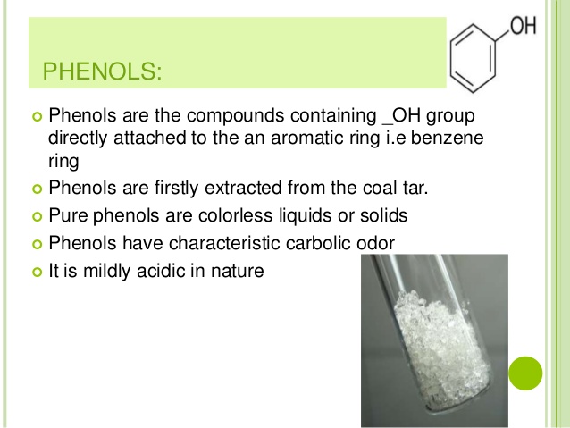 الفينول مركب عضوي يتالف من حلقة بنزين ومجموعة هدروكسيل. حيث تلتحم مجموعة الهدروكسيل بحلقة البنزين بدلا من ذرة هدروجين. والاسم العلمي للفينول هو هدروكسي بنزين وكان يدعى سابقا بالحمض الكربولي Carbolic Acid حين كان يستخدم كمطهر.