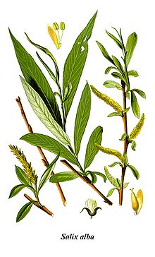 اسبرين Aspirin :مشتق لحمض الساليسيليك المستخرج من لحاء شجر الصفصاف ، واسمه أسيتيل حمض الساليسيليك ، ذو تأثير مسكن للألم وخافض للحرارة