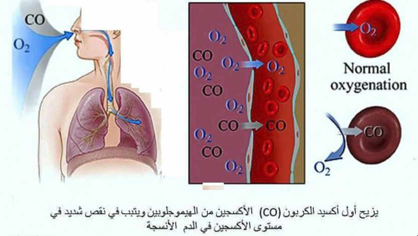 القاتل الصامت كما يسميه البعض هو اول أكاسيد الكربون ، الذي يتكون بفعل الإحتراق غير التام للمركبات المحتوية على الكربون كالنفط والفحم ، صيغته CO ، سام ، يكتسب سميته من قوة ارتباطه بهيموغلوبين الدم فارتباطه بالهيموغلوبين أقوى من ارتباط كل من الأكسجين وثاني أكسيد الكربون . يتم معاجة التسمم بأول أكسيد الكربون عن طريق استنشاق الهواء النقي إذا كان التسمم بسيطاً ، أما التسمم بكميات كبيرة من أول أكسيد الكربون فتتم معالجته بحقن المتسمم بأزرق الميثيلين الذي يحل محل أول أكسيد الكربون في هيموغلوبين الدم .