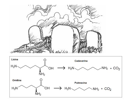 ان اسوأ رائحة على وجه الكوكب بعد رائحة مركبات الثايول هي رائحة مركبين عضويين (امينات عضوية) والتي تنتج عن تفكك البروتينات بفعل البكتيريا ولكن ليس الى احماض امينية حيوية وانما الى مركبات الامين المعروفة برائحتها السيئة وهما الكادافرين والبيوترسين المتسببان في رائحة الجثث بعد الموت.