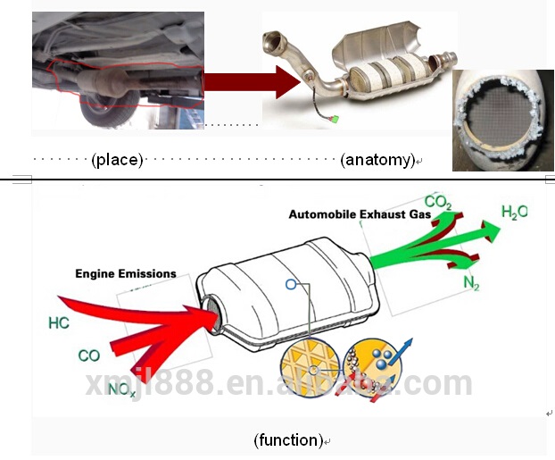 هو قطعة توجد بين محرك السيارة والعادم وهو ذات اهمية كبيرة جدا لتقليل التلوث الحاصل عن احتراق الوقود من خلال التفاعل بين غاز اول اوكسيد الكاربون السام وغاز اوكسيد النتروجين مع فلز البلاتين الموجود داخل المحول على هيئة خلية النحل ويحولها الى ثاني اوكسيد الكربون وغاز نيتروجين بنسبة 95% ونظرا لاحتوائه على البلاتين فأن سعر هذا المحول مرتفع لذا يلجأ الكثير من اصحاب السيارات الى ازالة هذا الجزء من السيارة عند انسداده واستهلاكه وهذا له اثر كبير على تلوث البيئة