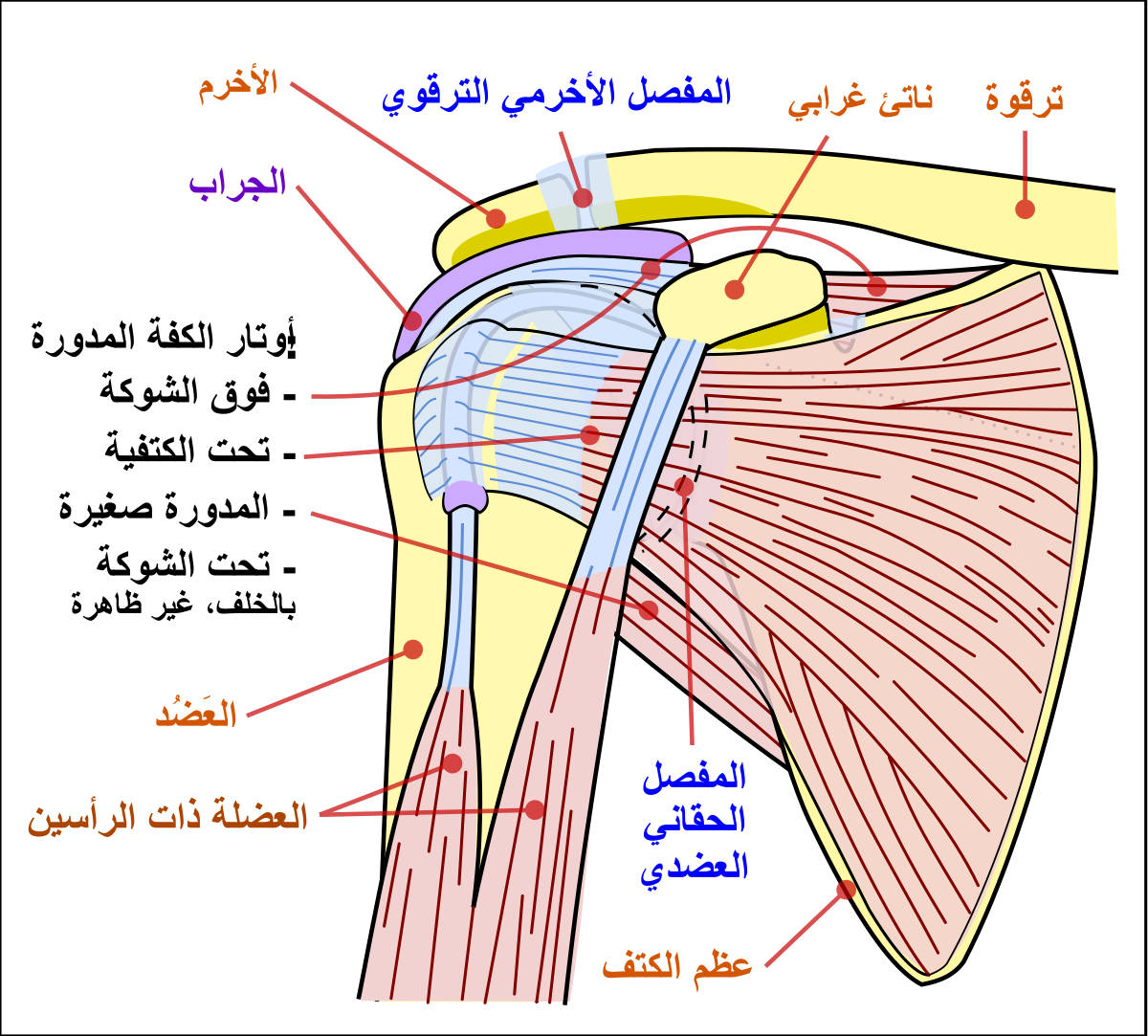 الكتف: تمتد عظام كتف الإنسان باستقامة، وله مفصل كتف واسع الحركة وهو نوع من التكّيف مكّن الإنسان من رمي سهامه بدقة على الحيوانات التي كان يصطادها، في المقابل تتميّز أكتاف القردة بأنّها مقوسة للأعلى، مما مكنها من تسلق الأشجار بسهولة.
