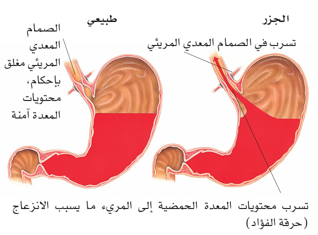تحدث هذه الحالة عندما تتسرب محتويات المعدة الحمضية من المعدة الى المريء ما يسبب اعراض حرقة الفؤاد . هذا يحدث عندما يفشل الصمام في الجزء العلوي من المعدة بالبقاء مغلقاً بإحكام.