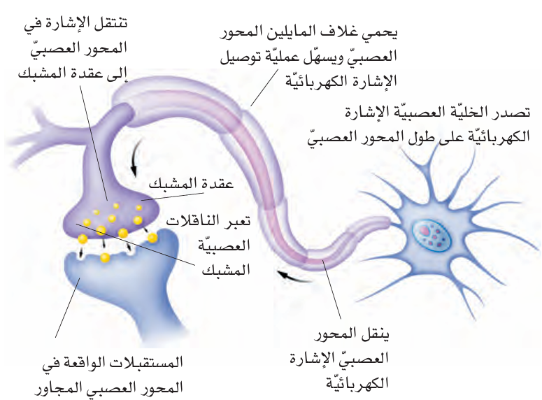تنتقل اشارات الدماغ في الخلية العصبية بواسطة المحور العصبي. ومن اجل ان تمر الاشارة في المشبك ( الفجوة ) الذي يقع بين خليتين عصبيتين ، يجب ان تمر الناقلات العصبية الكيميائية في عقدة المشبك باتجاه الخلايا المستقبلة في الخلية التالية .
