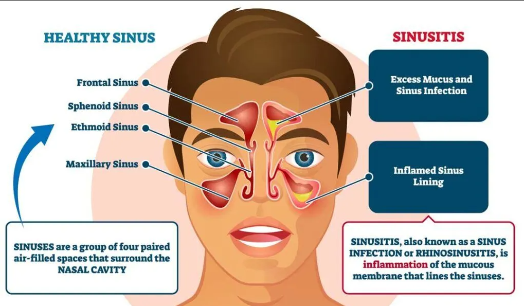 صداع الجيوب الانفية والذي يسمى Sinus headache يتركز الالم في هذا النوع من الصداع عند الحاجبين والجفنين امتداداً لإسفل العين