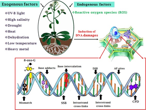 يتعرض الحمض النووي في النباتات للتلف تماماً كما يحدث في الإنسان، وذلك نتيجة لعوامل خارجية مثل الأشعة فوق البنفسجية، الجفاف، الملوحة، والحرارة، أو لعوامل داخلية كالجذور الحرة الناتجة عن العمليات الحيوية. ولمواجهة ذلك، تمتلك النباتات آليات فعالة لإصلاح هذا التلف والحفاظ على استقرارها الوراثي، مما يساعدها على البقاء في بيئات قاسية