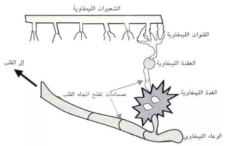 يخضع دوران الليمف داخل الأوعية الليمفاوية لنفس القوى المنظمة لرجوع الدم الوريدي إلى القلب، حيث لا توجد مضخة لليمف كما هي موجودة في الدورة الدموية. ومن أهم العوامل التي تعمل على تدفق الليمف في اتجاه القلب هو وجود صمامات هلاللية (تفتح في اتجاه القلب) تمنع رجوع الليمف في الاتجاه المعاكس بالإضافة إلى حركة عضلات الجسم رجوع الليمف في الاتجاه المعاكس بالإضافة إلى حركة عضلات الجسم وحركة الجهاز التنفسي التي تساعد في دفع السائل الليمفاوي اتجاه القلب.