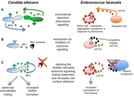 ببتيدات قصيرة السلسلة تفرز من قبل الخلايا المستلمة (عند إجراء عمليات الاقتران في البكتريا) وهذه الببتيدات تؤدي إلى تحفيز الخلايا الواهبة أن تخلق على سطوحها مكونات لاصقة تؤدي إلى الالتصاق بين الخلايا الواهبة والمستلمة وبذلك يتم حقن Plasmid DNA.