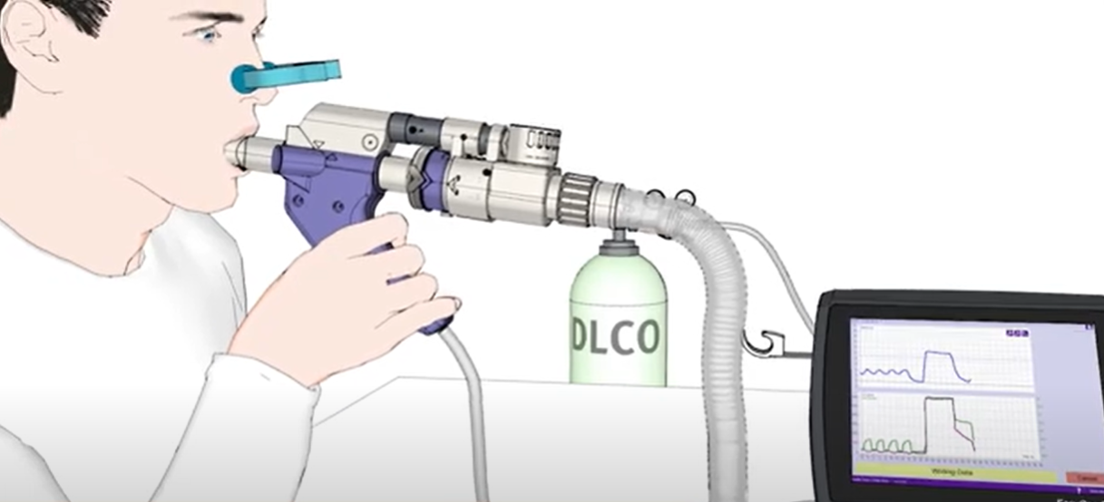 DLCO Test اختبار يقيس قدرة الرئة على نقل الأكسجين إلى الدم.