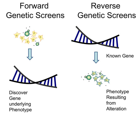 طريقة لاكتشاف وظيفة الجين تتم بطريق معاكس لترتيب الجين الطبيعي او ما يعرف ب Forward Genetics اوالوراثة التقليدية . ففي الوراثة التقليدية يتم البحث لإيجاد أساسيات النمط المظهري او الصفة المميزة لوجود جين معين، في حين في الوراثة العكسية هي محاولة إيجاد الأنماط المظهرية الممكنة أولا التي تشتق من توالي محدد من DNA ولذلك فالمحاولات في الوراثة العكسية هي محاولات ربط توالي محدد وتأثيره في الكائن الحي .