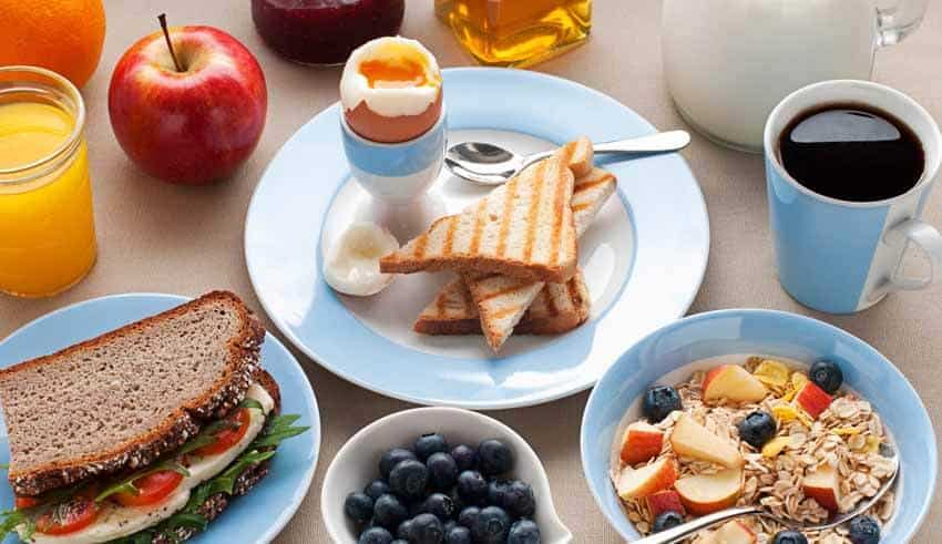 يفضل أن تكون وجبة الفطور غنية بعناصر البروتين، مثل: البيض، والزبادي، والجبن منخفض الدهون؛ لأنّ البروتين يحافظ على نسبة الأنسولين في الجسم، من خلال الحرق البطيء للسكر، وإنتاج كميةٍ مناسبةٍ من الطاقة طوال اليوم، كما يساعد البروتين على الشعور بالشبع، ولا يضطر الشخص لتناول الوجبات الخفيفة غير الصحية.