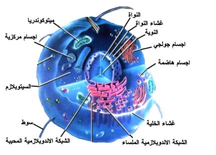 حقيقية النّواة وهي الخلايا المُعقّدة التي يُحيط الغلاف النوويّ بمادتها الوراثيّة وتُسمّى بالنّواة، وتتألّف من أربعة أقسام رئيسة هي الغشاء الخلويّ، والهيكل الخلويّ، والنّواة، والسّيتوبلازم، أمّا الأقسام الأُخرى من الخليّة فتضمّ أجزاءً أُخرى أوّلها الشّبكة البلازميّة، وأجسام جولجي، والميتوكندريا، إضافةً إلى الجُسيمات الحالّة، والبلاستيديات الخضراء (في الخلايا النباتيّة).