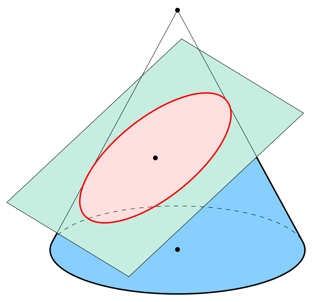 أي يمكن رسم القطع الناقص بواسطة خيط مثبت من طرفيه في نقطتين f1 , f2 ورسم القطع الناقص بالقلم حولهما انطلاقا من النقطة x .