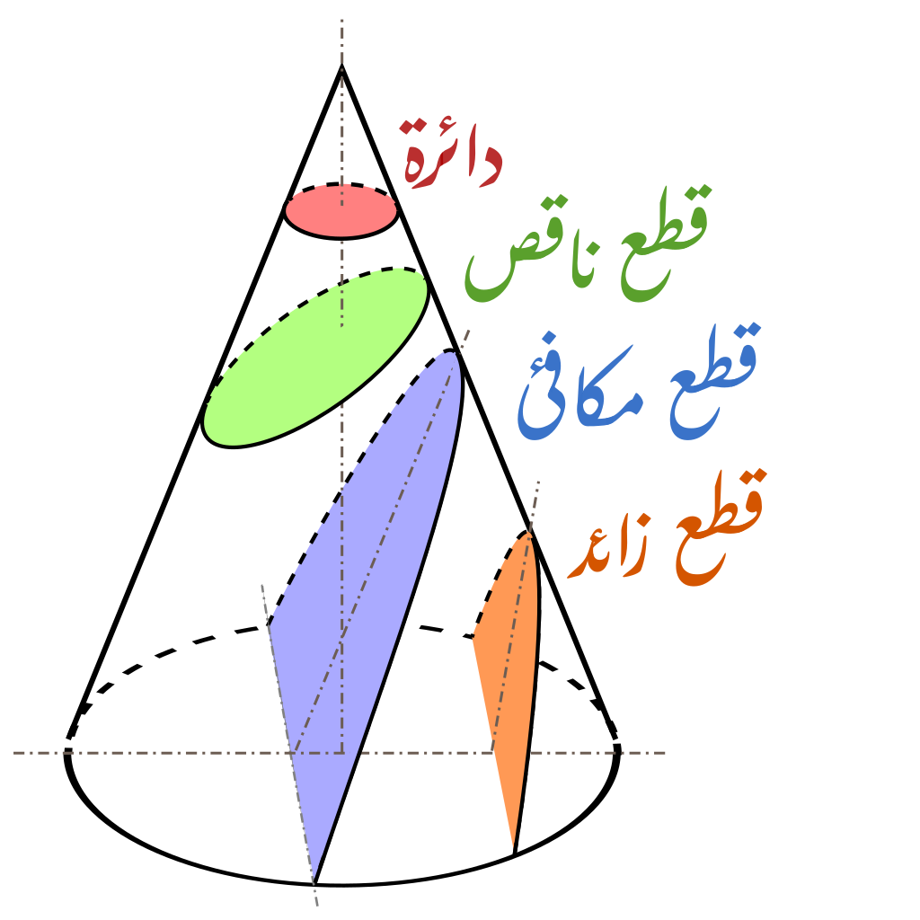 القطع الزائد ناتج عن قطع المخروط بمستو في أحد نصفي المخروط، وهو الذي يكون اختلافه المركزي أكبر من الواحد الصحيح، ويمكن تعريفه بعبارة أخرى: وهو القطع الذي ينشأ عن قطع سطح مخروطي دائري قائم وامتداده من جهة رأسه بمستو يميل على مستوى دليله بزاوية أكبر من زاوية ميل أحد الرواسم على مستوى الدليل.