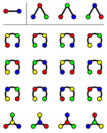 الصيغة تعد بصورة مكافئة عدد الأشجار المغطية في رسم بياني كامل مع رؤوس مميزة.