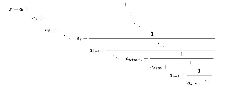 كسر مستمر دوري ( Periodic continued fraction) غير منتهٍ هو كسر مستمر يكتب على الشكل التالي: