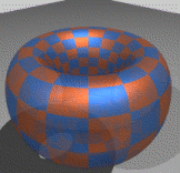 الدوائر الأبولونية، كل دائرة زرقاء تتقاطع مع كل دائرة حمراء بزاوية قائمة، والعكس صحيح